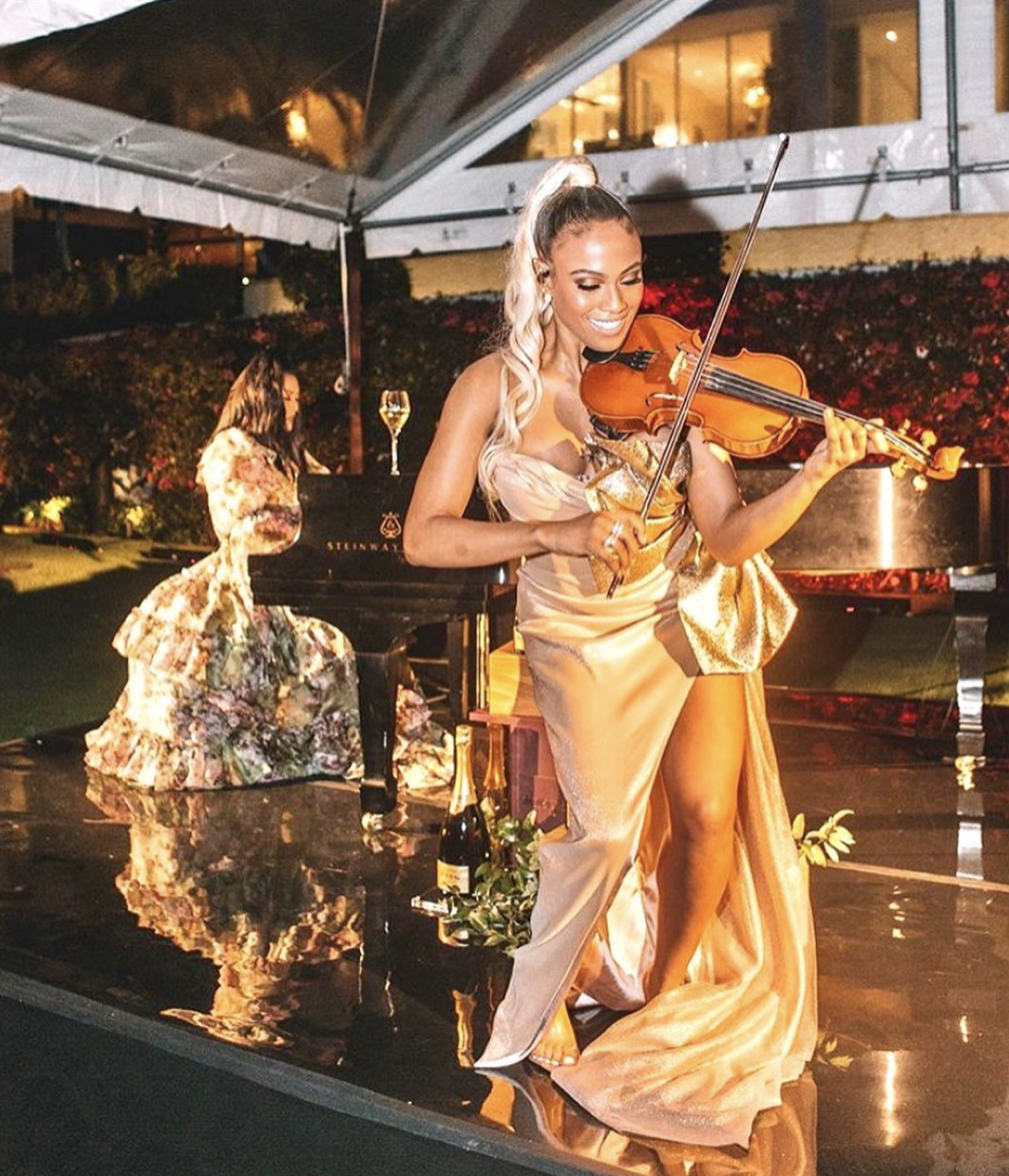 The stunning violinist Ezinma wearing a custom made Nelson Tavarez NT